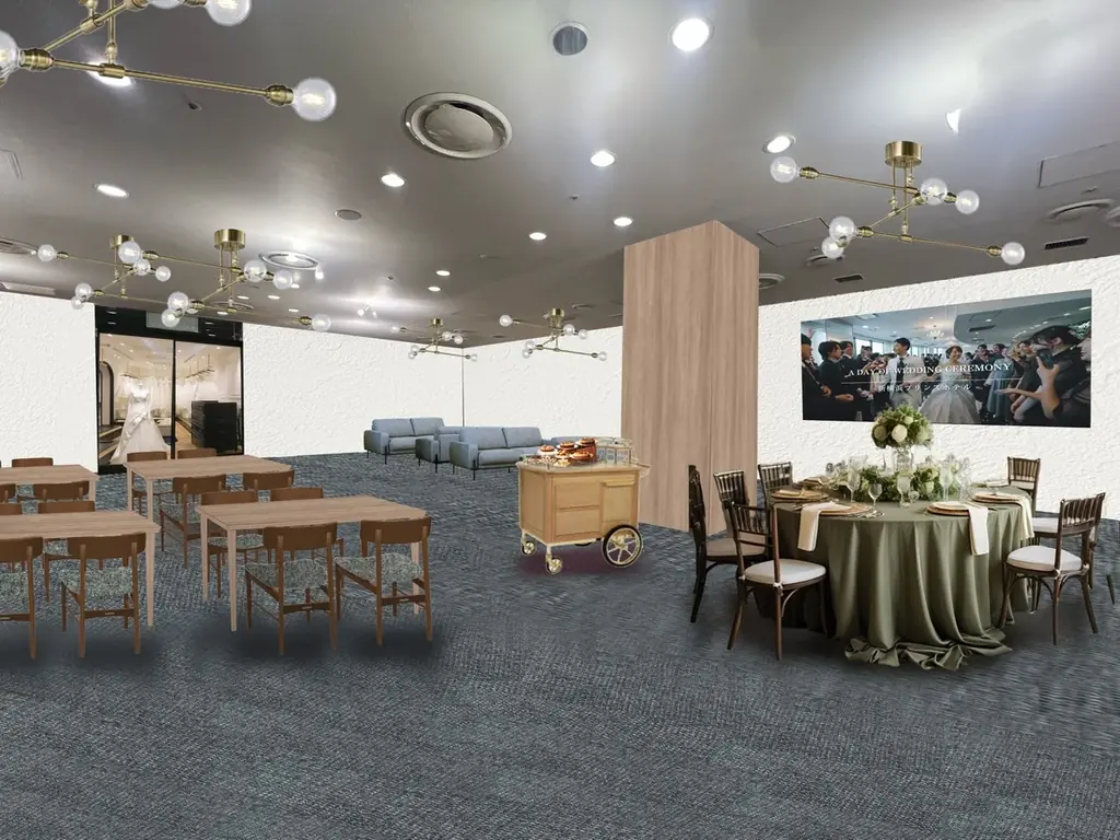 サロン内には、ご結婚式当日の雰囲気を実感できる特設コーナーが新設されます。実際の当日の流れや会場の様子を視覚的に確認できる設備を整え、短期間で準備を進める必要があるカップルや、打合せ時間が限られている方にも配慮した構成です。