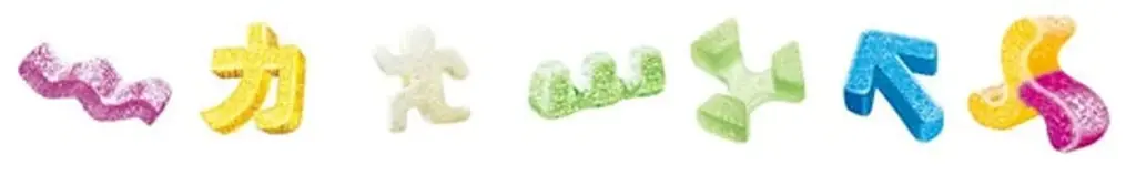 カンデミーナシリーズの核となるのは、特許を含む成型技術とそれに伴う独創的なグミ形状です。特許製法によって作られる3D形状の粒は、波型、パズル型、矢印型など従来にない立体形状を実現し、噛んだときの弾力や咬みごたえに独自性を与えています。
