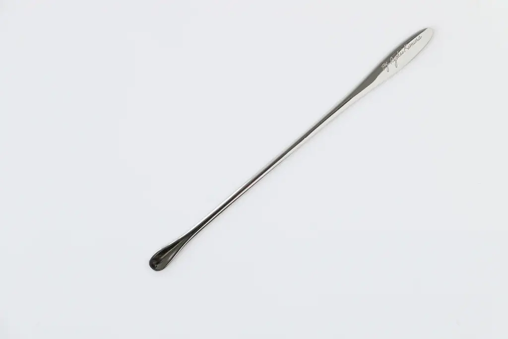 購入特典として、オリジナルマドラー1個が1本の購入につき付属します。マドラーはステンレス製で高級感があり、持ち手部分には「By Ryohei Kimura」という文字が入っています。特典は商品と同梱され、日常のドリンク作りやサーブに使える仕様です。