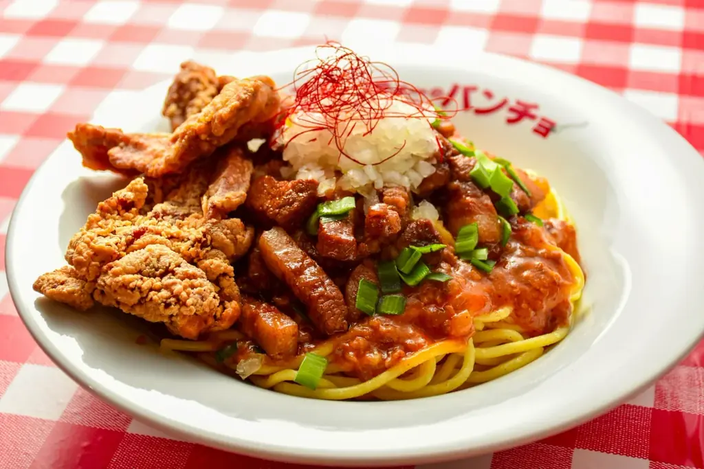 麺は2.2mmの極太を用い、パンチョ伝統の茹で置きによる仕込み方法(前日に茹で置きし適度に水分を吸わせる)でソースとの絡みをよくする調理です。これは店舗ごとの手作りソースと組み合わせることで完成する設計です。