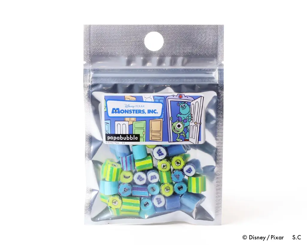 ディズニー・ピクサー映画『モンスターズ・インク』をテーマにしたキャンディミックスは、サリーやマイクといったキャラクター、及び作品ロゴのアイコンを小さなキャンディの中に丁寧に表現しています。視覚的なキャラクターの再現が目を引く仕上がりです。