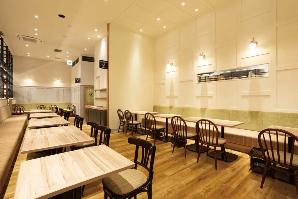 家族連れの利用に適したレイアウトで、ゆっくりと食事やスイーツを楽しめる空間になっています。