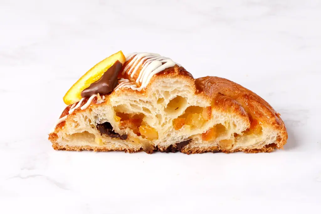 | クロワッサンショコラオランジュ | クロワッサン生地でオレンジピールとスイートチョコを巻いて焼成。ほろ苦さと爽やかな香りが特徴。 | 518円 | 528円 |