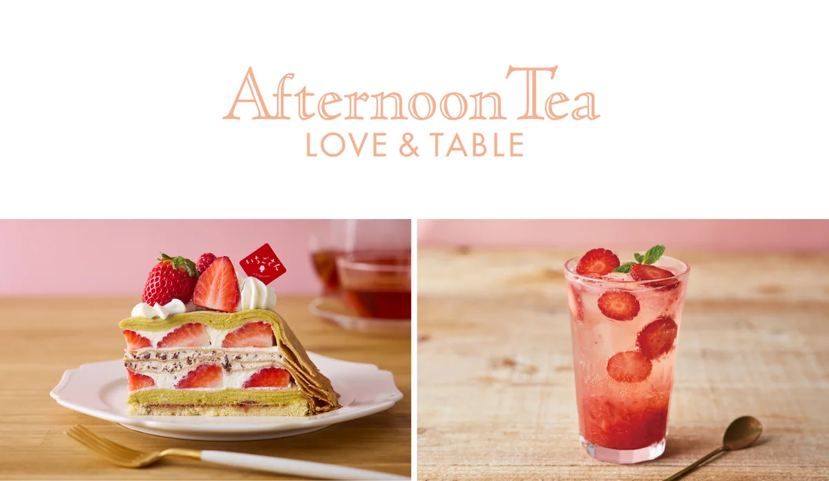 | アフタヌーンティー・ラブアンドテーブル 表参道 | 1/15(木)~3/4(水) | 佐賀県産「いちごさん」とピスタチオクリームのいちごサンドミルクレープ2026(セット販売)/つぶつぶ「いちごさん」ソーダ(セット追加+¥418) | ミルクレープ:¥2,068(セット)/ソーダ追加:+¥418(セット販売のみ) |