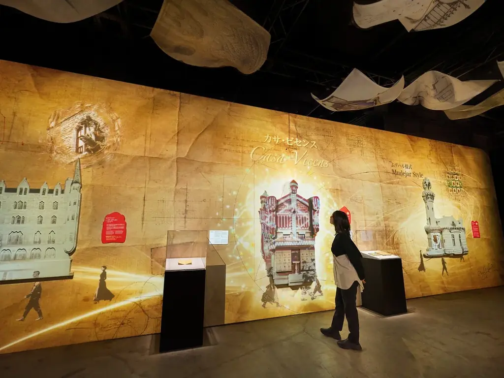 展示は複数の領域で構成され、ガウディの建築や思想、制作の現場を多角的に提示します。各エリアはタイトルで区分され、来場者が順を追ってガウディの創造世界を体験できる設計です。
