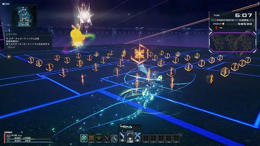 探索ポイントはエネミーの撃破やアンロックサインの収集などで獲得できます。フィールド上に配置された「ラッピーティンクル」は探索ポイントを消費して入手するオブジェクトで、エネミー撃破時の探索ポイント獲得倍率を上げる効果があります。また、新たなトライアル「スターラッピーティンクル回収」では、出現するスターラッピーティンクルに触れることで大量の探索ポイントを獲得できる場合があり、倍率をわずかに上昇させます。