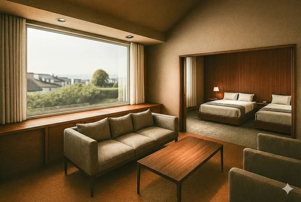 また、各客室内には旧相馬家住宅ゆかりの工芸品や「江差屏風(精巧レプリカ)」を配置し、展示ケース越しではなく宿泊者が日常的に文化遺産を身近に感じられる工夫がなされています。