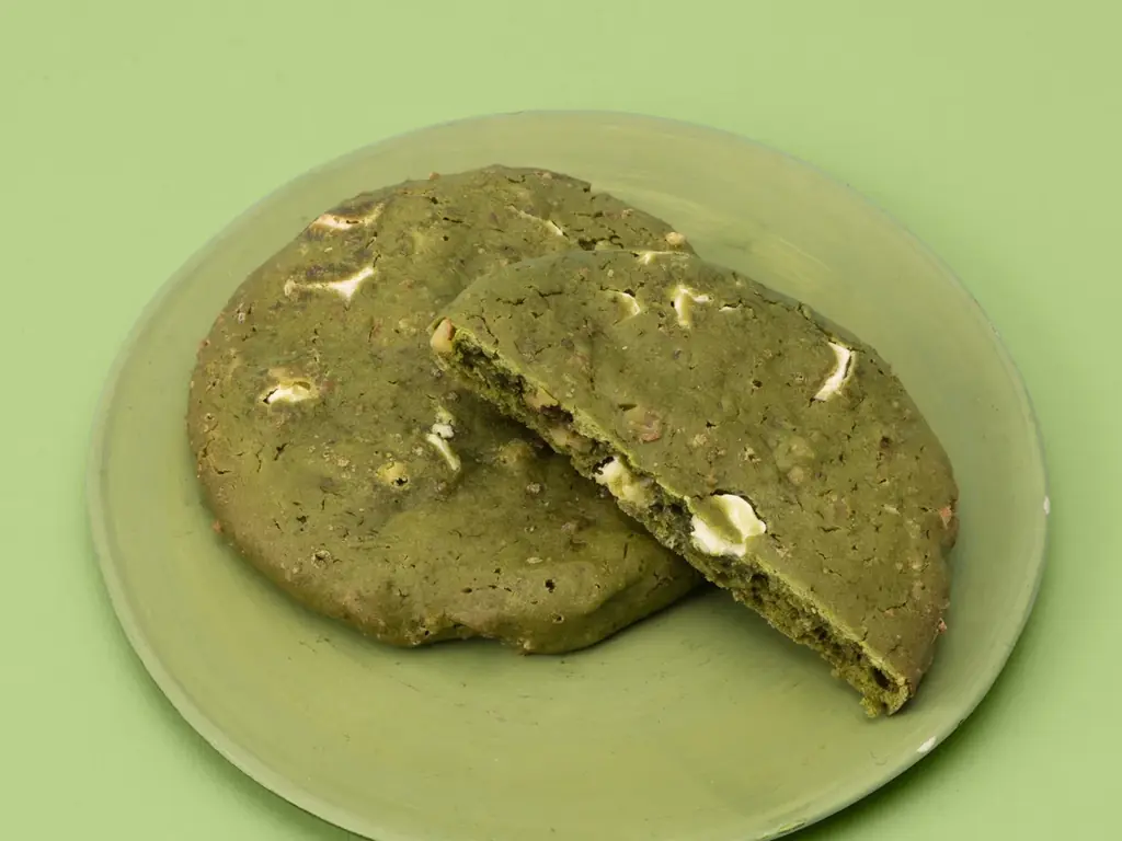 - 狭山茶&くるみ&ホワイトチョコ(marl エキュート大宮):1枚 365円。狭山茶味の生地にホワイトチョコとローストくるみを合わせた大判クッキー。