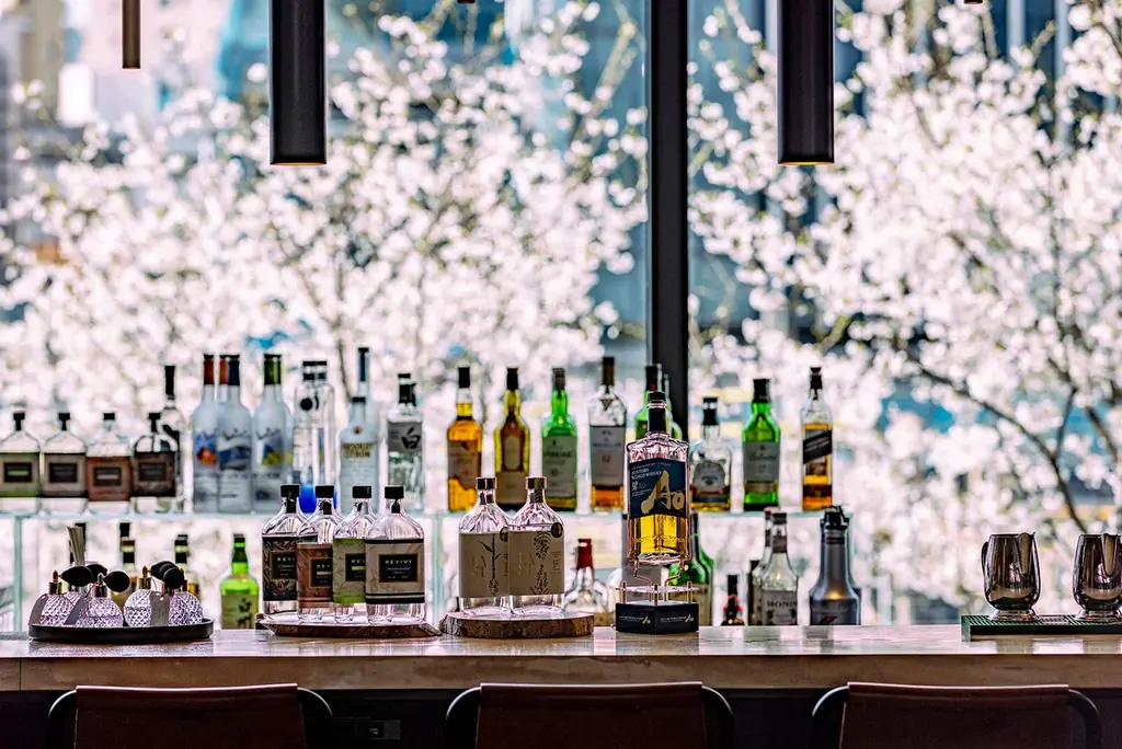 プルマン東京田町では、桜が見頃を迎えるとロビーやバーに面した大きな窓一面に桜の風景が広がります。都心にいながら館内から満開の桜を眺められる点が特徴で、3月から4月にかけて春爛漫の情景を楽しめます。