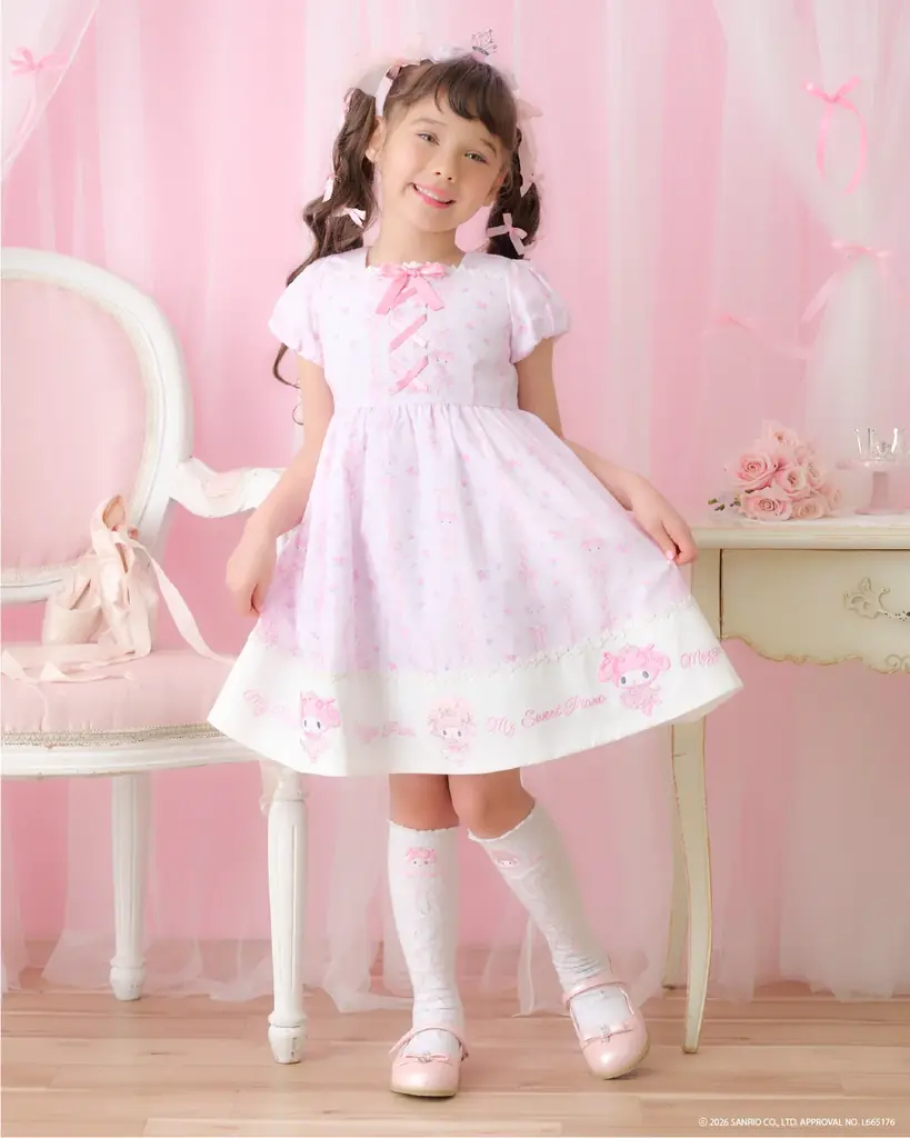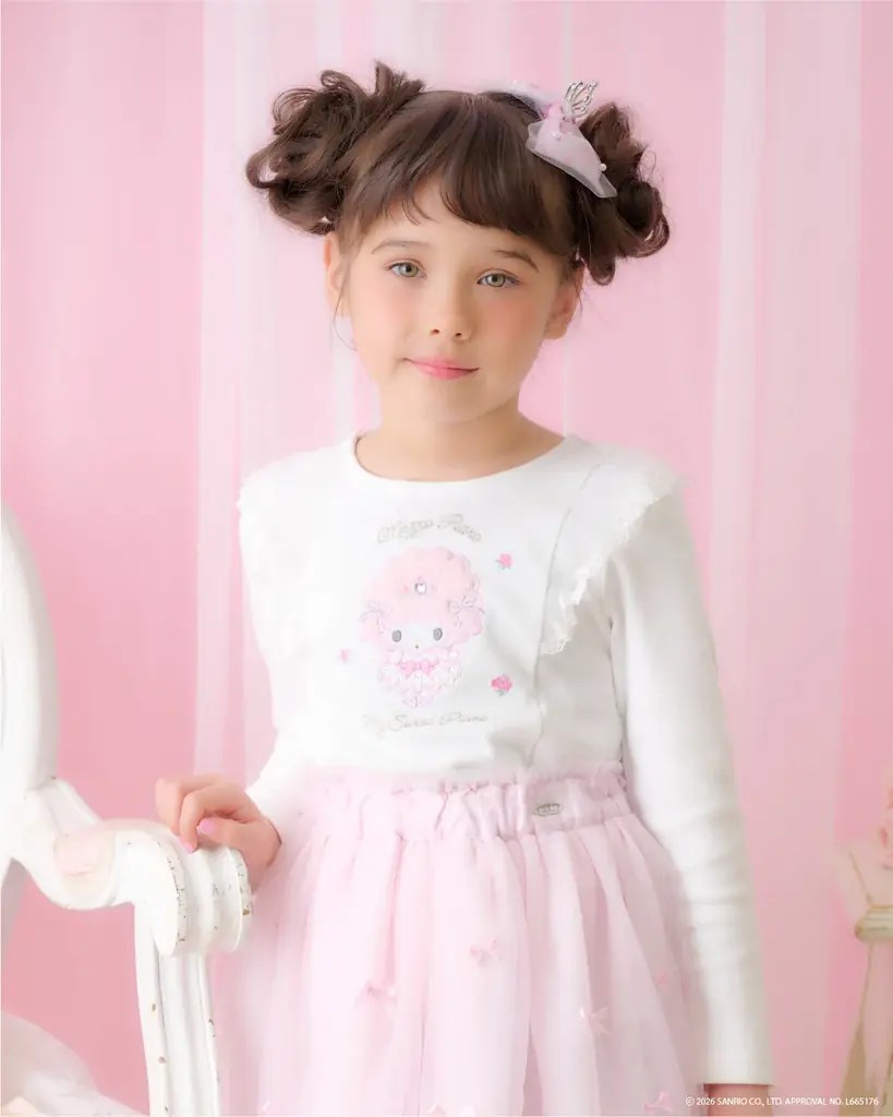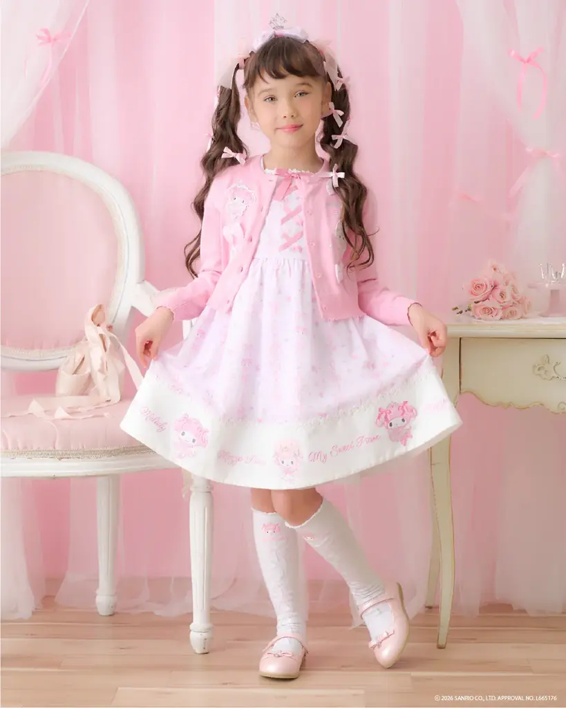 mezzo piano(メゾ ピアノ)は女の子が可愛らしくなれるロマンティック&スウィートなテイストを特徴とするブランドです。カジュアルウェアからフォーマルドレスまで幅広いアイテムを展開しており、今回のコラボはブランドのテイストとサンリオキャラクターの世界観が合致した企画です。