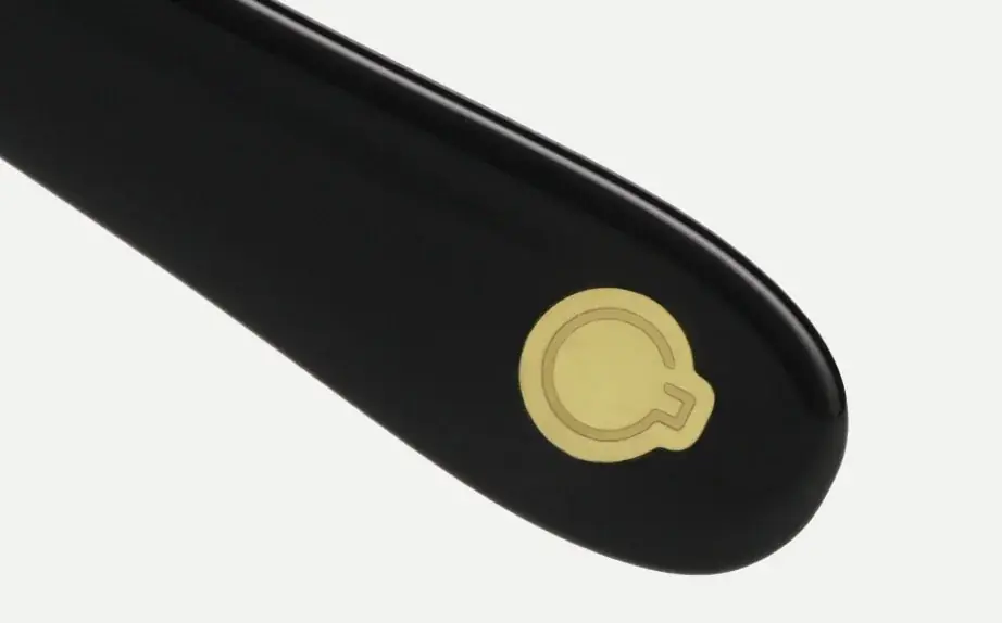 - さりげないロゴ配置:テンプル内側にマグカップを上から見たモチーフのロゴを配置し、折りたたみ時にロゴが現れる仕様。