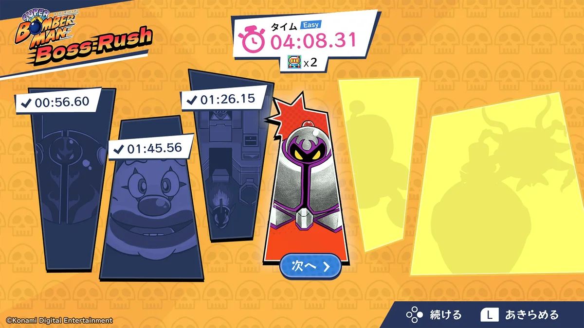 また、シリーズ作品に登場するボスと連続して対戦できる「ボスラッシュモード」が新規搭載されており、3段階の難易度から選んでタイムアタック形式で挑戦できます。ボスごとのパターンを短時間で繰り返し練習するのにも適しています。