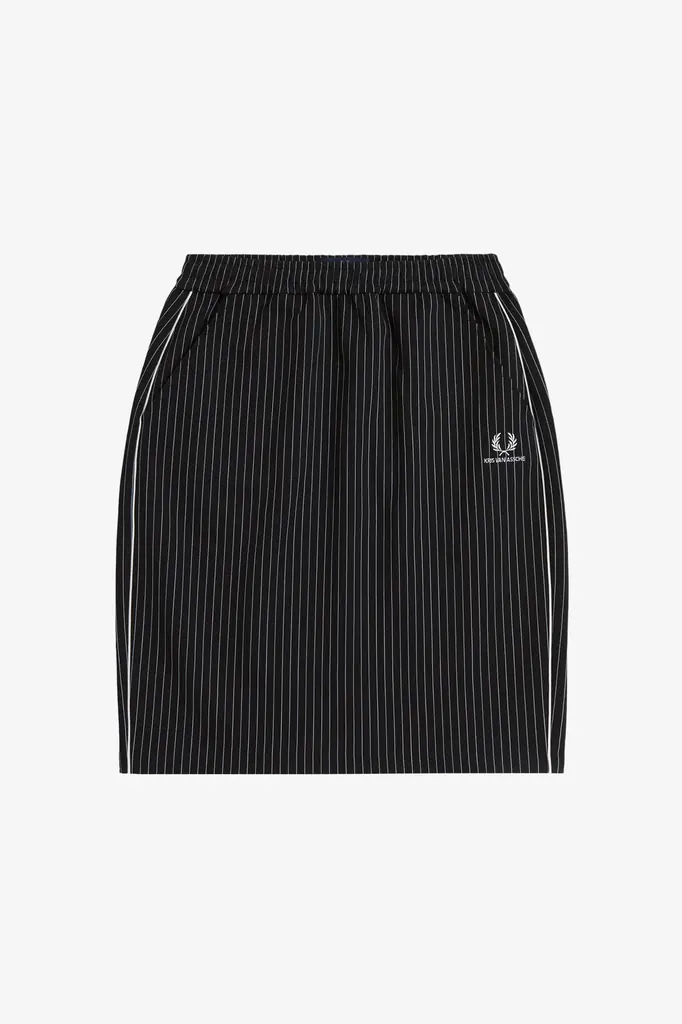 クラシックなトラックジャケットとトラックパンツをベースに、シックなブラック×ホワイトのピンストライプで仕立てたシリーズが登場する。パンツのウエストには調整可能なドローコードを採用し、同素材によるトラックスカートもラインナップされる。