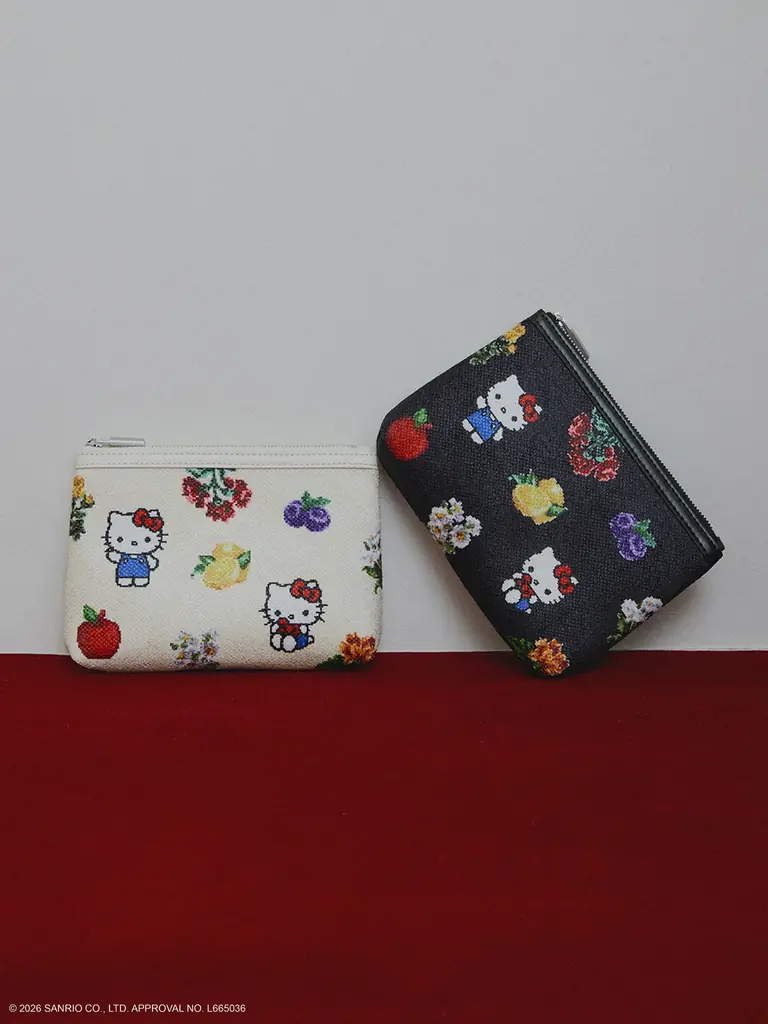 ハローキティとフルーツミックスを組み合わせた、SS(春夏)らしいキャッチーなAmeriオリジナルのピクセルパターンを採用したポーチです。コンパクトなサイズ感でありながら、マチ付きで収納力が確保されています。