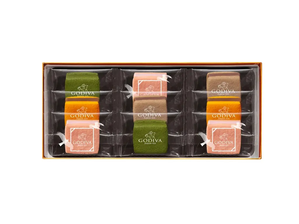 商品概要:ゴディバの焼き菓子である「ラングドシャクッキー」「サブレショコラ」「ドームバームクーヘン」の3種類を色とりどりにアソートした詰め合わせです。定番と期間限定を組み合わせた内容で、春の贈り物としての体裁を備えています。