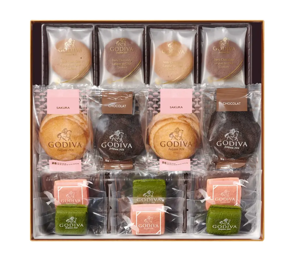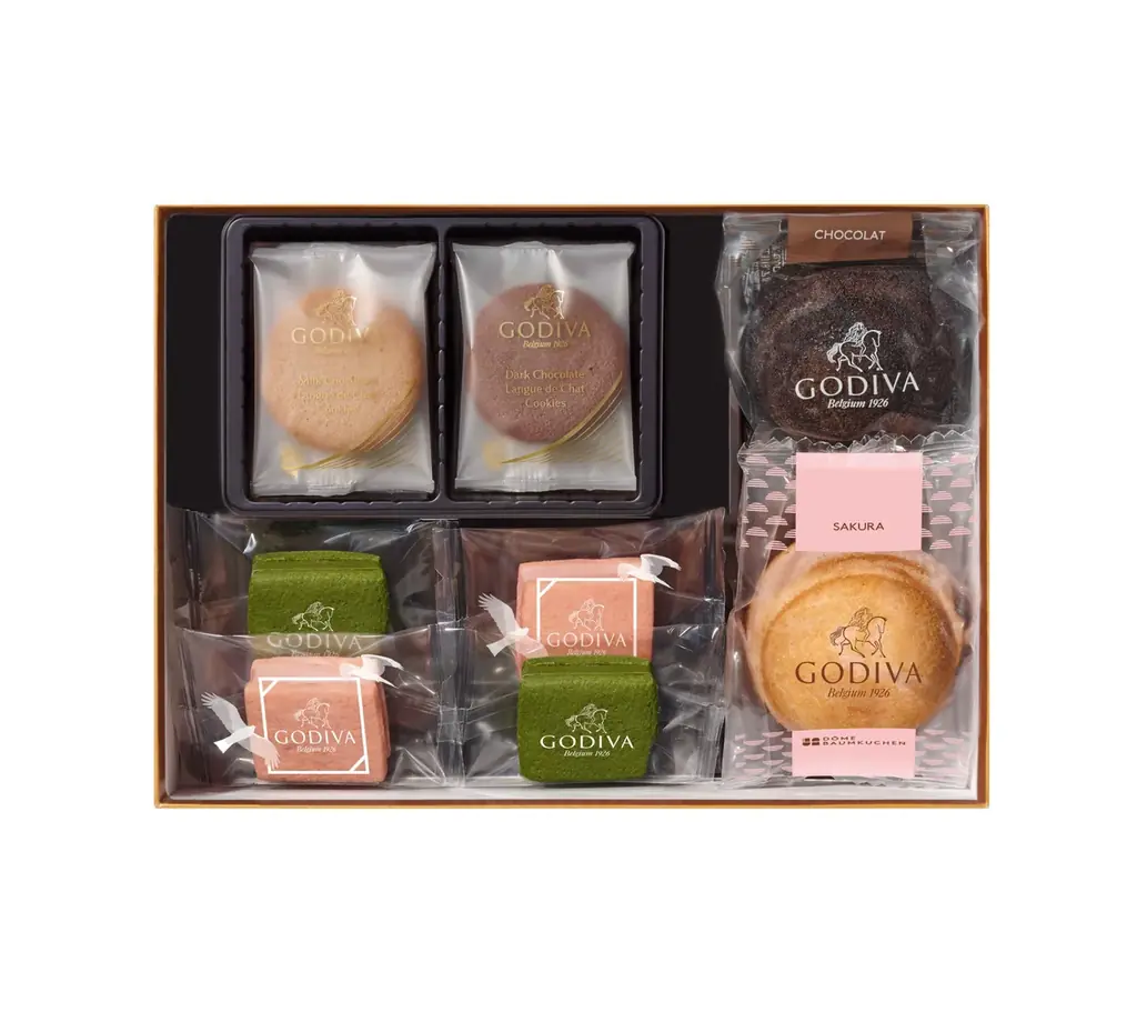 | 春の焼き菓子アソートメント | 7個入 / 10個入 / 18個入 | 2,376円 / 3,564円 / 5,724円 | ラングドシャ、サブレショコラ、ドームバーム(桜ジャム入り) | 2026/2/16~2026/4/21(無くなり次第終了) | 全国ゴディバショップ、GODIVA café、オンライン |