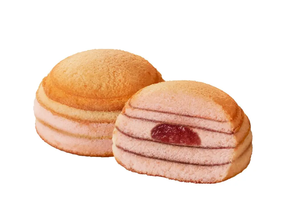 桜フレーバーの詳細:ドームバームクーヘンには、桜が上品に香るジャムを、桜パウダーとホワイトチョコレートを練り込んだバームクーヘン生地で包む仕様です。桜ジャムには塩味がアクセントとして入り、ホワイトチョコレートの甘さと組み合わせて味わいに奥行きを与えています。パッケージには桜のイラストが施され、春らしさを演出します。
