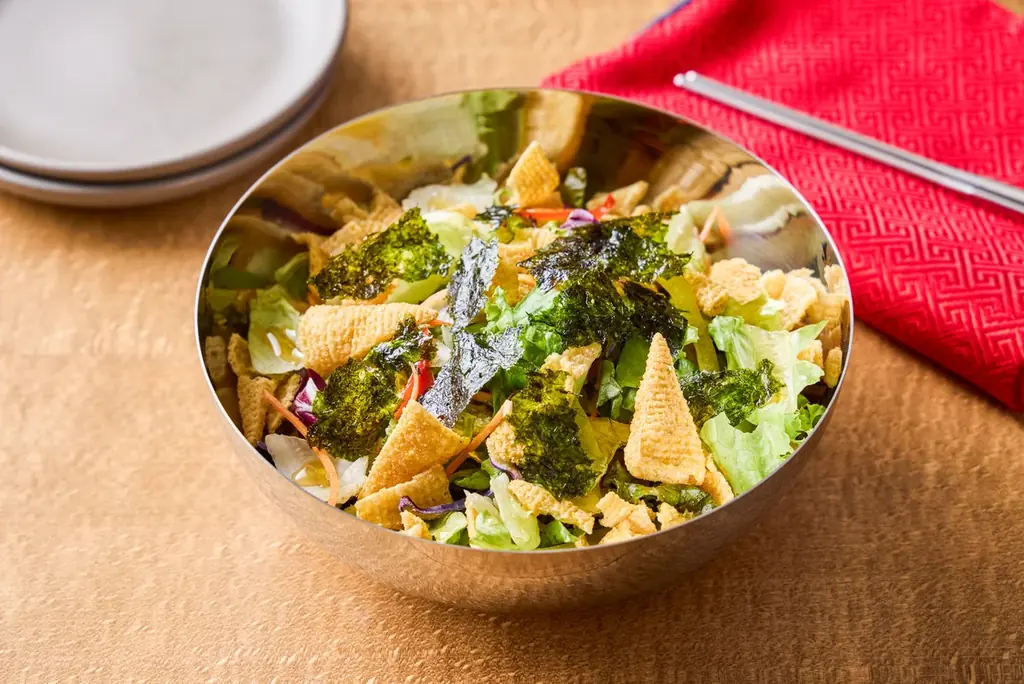 - とんがりコーンでチョレギサラダ風:サラダのトッピングとして使用し、カリッとした食感とピリ辛の風味がアクセントになる組み合わせ。サラダに載せるだけで手軽に味わいを変えられます。