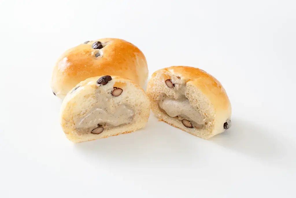 ジャンルが異なる新商品として発表されたパン。黒豆を用いた風味設計とダブルクリームの組合せで新たな食体験を目指す商品です。発表会では製法や商品の魅力が説明されました。