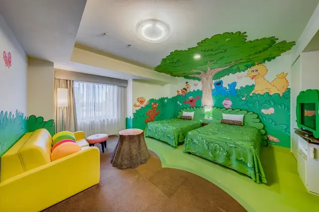 セサミストリート・デザイン・フロアには複数のタイプの客室があり、その一例として「セサミストリート・マーチングバンド・ルーム」「セサミストリート・ビッグフォレスト・ルーム」などが設けられています。これらの客室にご宿泊の方には、新たな特典が提供されます。