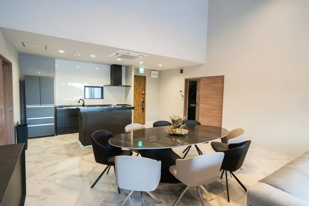 施設は400㎡を超える敷地・建物で構成され、開放感のあるダイニングや独立した寝室などを備えています。滞在の快適性を高めるために、プライベートサウナやプール、BBQ設備など、上質なリゾート機能が一通り整えられています。