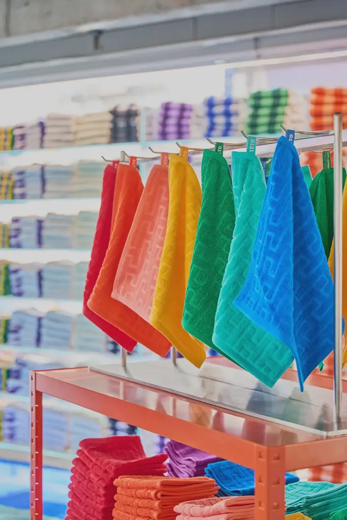 - 世界でわずか1%しか生産されないハイエンド素材「スーピマコットン」を使用し、柔らかな肌触りと鮮やかな発色が特長。ソンスのフラグシップストアは壁一面にタオルを敷き詰めた美術館のような空間が話題です。