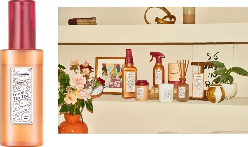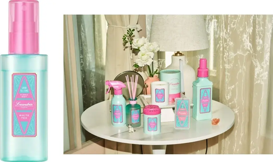 今回の展開では柔軟剤(大容量の詰替タイプを含む)をはじめ、ファブリックミスト、フレグランスジェル、ルームディフューザーなど、衣類や生活空間で香りを楽しめる主要アイテムが揃います。さらにTEAシリーズ初となる携帯用のファブリックミスト(ホワイトティー、ウーロンティー、グリーンティーの3種)がラインナップに加わり、屋外でもティータイムのような落ち着いた香りを持ち運べる仕様です。