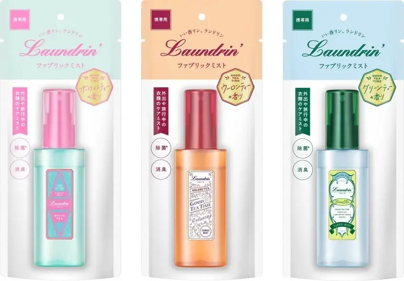 TEAシリーズ初の携帯用ファブリックミストが、ホワイトティー、ウーロンティー、グリーンティーの3種で数量限定にて登場します。各50mLのコンパクトサイズ(価格437円(税込))で、バッグやポーチに収まりやすく外出先での衣類・空間のリフレッシュに向きます。