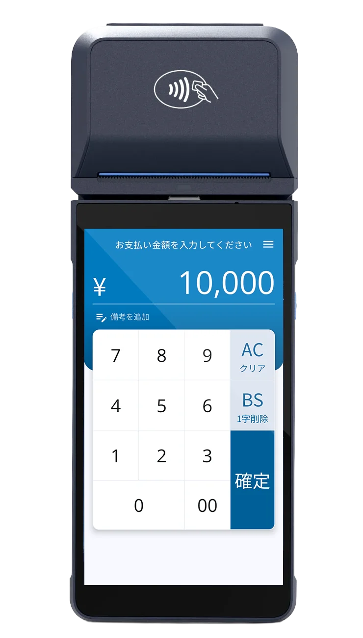 - モバイルおよび催事利用を想定し、商品登録から会計、レシート発行、キャッシュレス決済まで1台で完結。