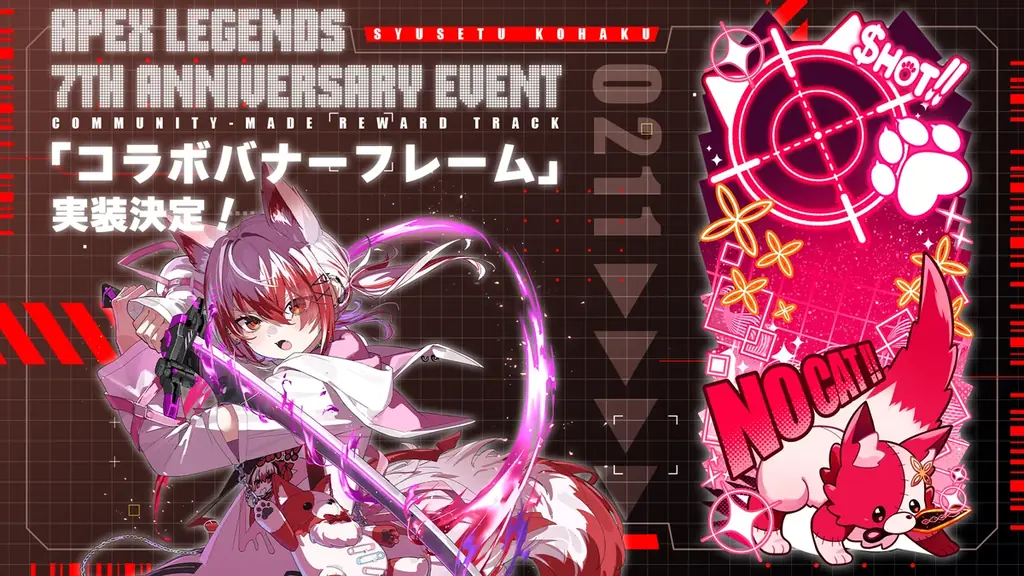 株式会社REJECTは、2026年2月16日18時に発表したプレスリリースにおいて、同社が運営するeスポーツチーム「REJECT」所属ストリーマー・秋雪こはくをモチーフとした『Apex Legends』のゲーム内コラボバナーフレームが、7周年アニバーサリー期間中のコラボアイテムとして実装されることを明らかにしました。