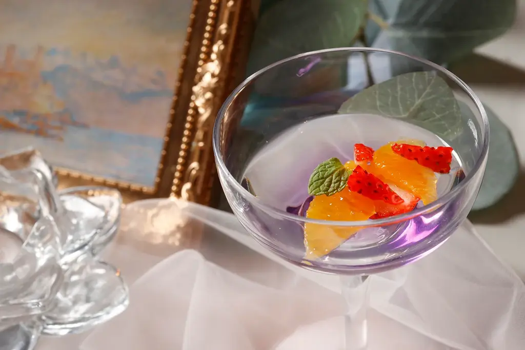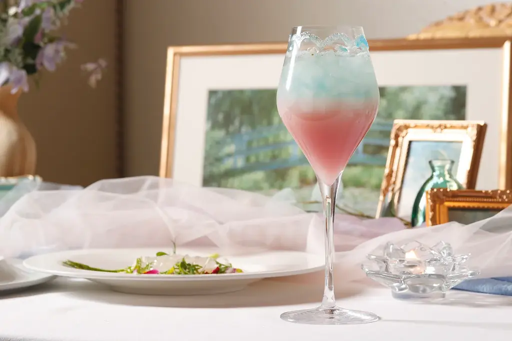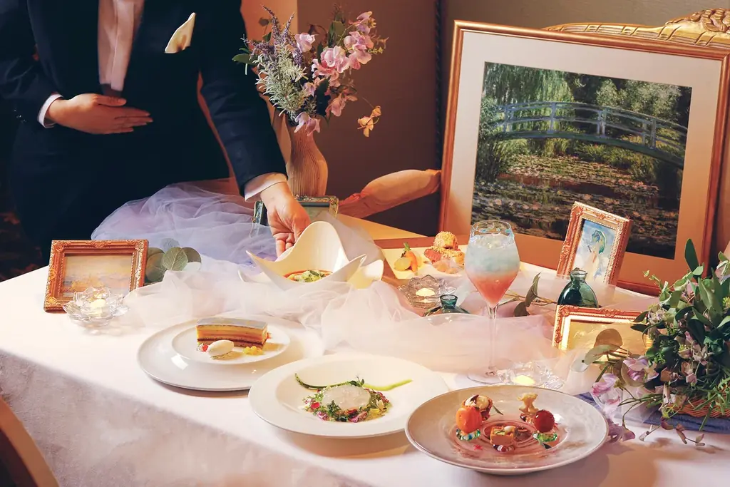 本企画は絵画の色彩を基点にした食体験であり、モネの庭園や作品に関する要素を細部にわたり料理へと反映しています。期間中はメニューや装飾を通して、冬から春へと移ろう光と色を五感で感じる構成が採られています。