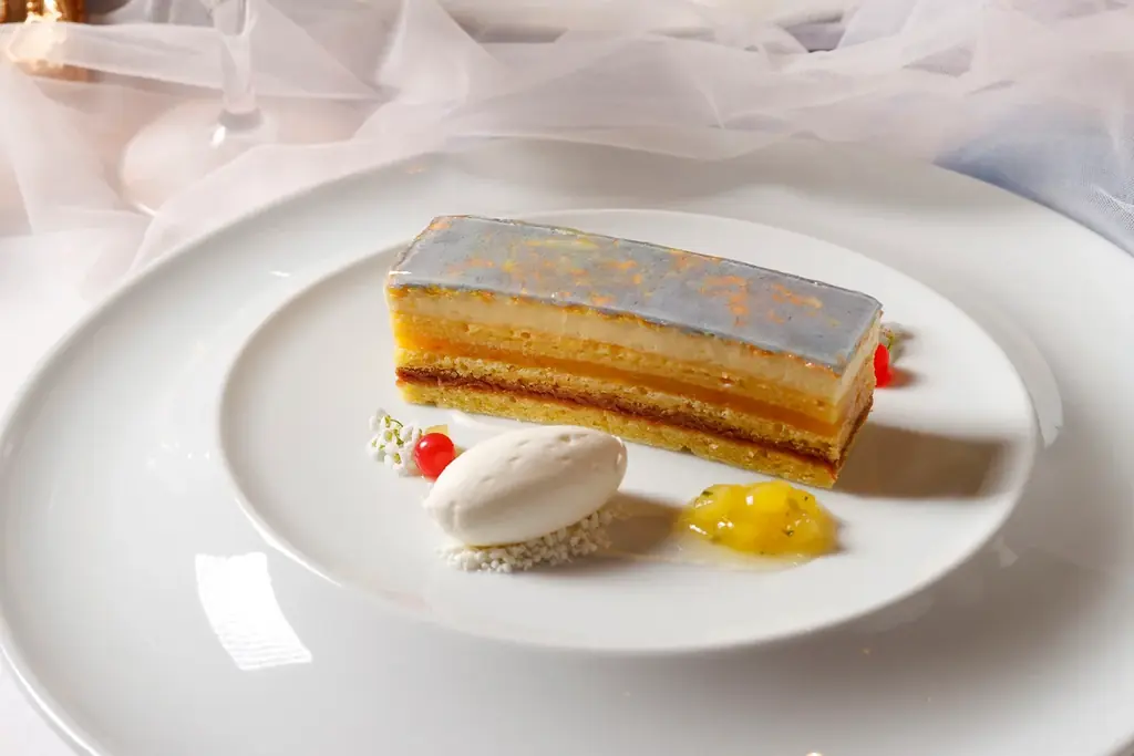 - オペラ・ブラン ~ロンドン国会議事堂、霧の中に差す陽光~(幻想的な情景を重ねたデザート)