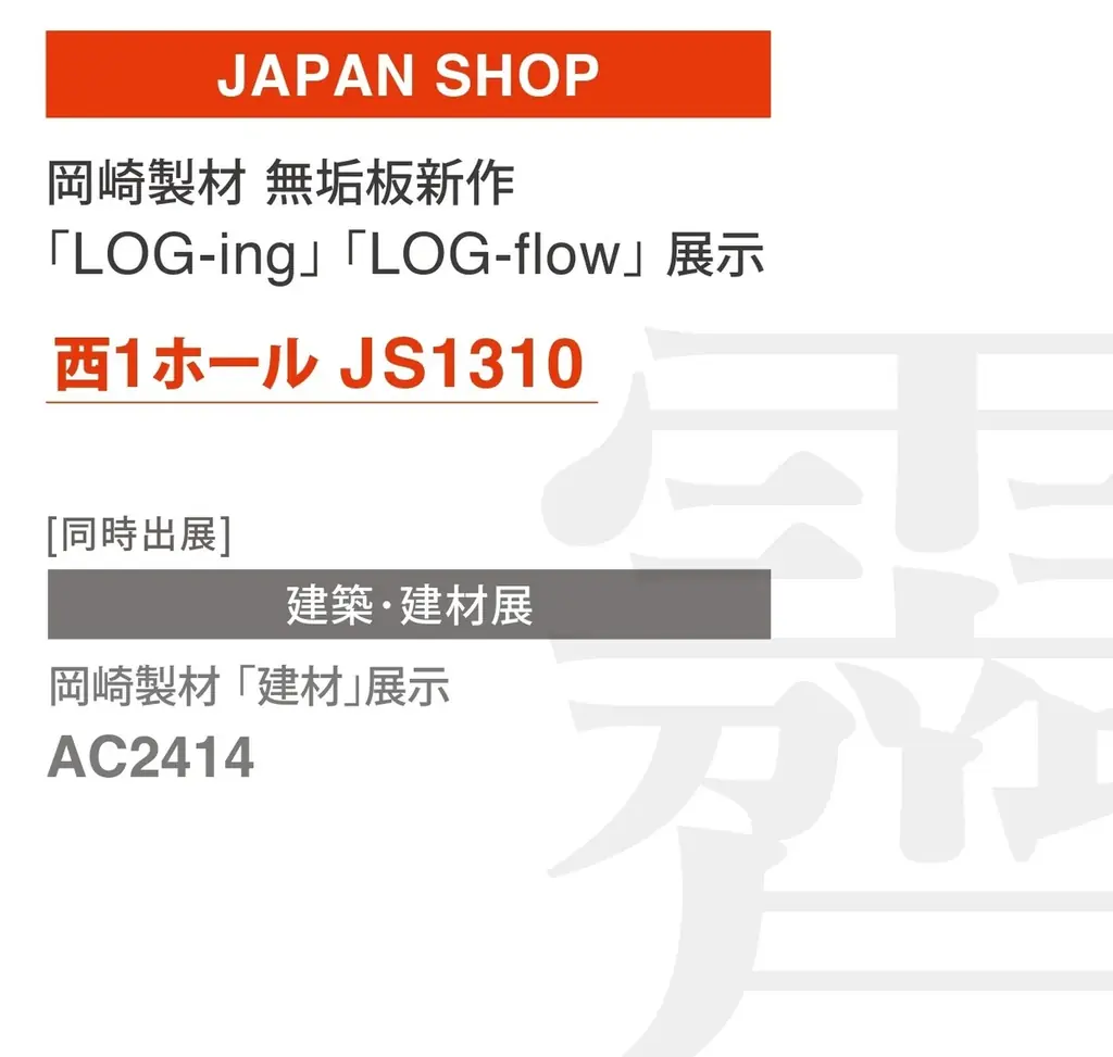 岡崎製材株式会社(本社:愛知県岡崎市、代表取締役:八田 欣也)は、創業1917年(大正6年)から続く100年以上の蓄積を背景に、国産材・欅に伝統工芸を融合させた新作群を第55回店舗総合見本市「JAPAN SHOP 2026」にて発表します。展示の中心となるのは、同社の登録商標であり意匠登録出願中のLOG-ingの新モデルであり、伝統技術と現代デザインを接続する試みです。