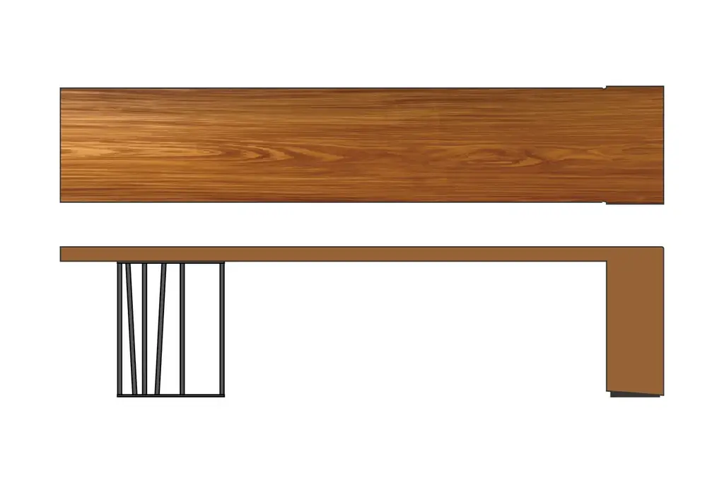 - A】SIZE:約4230×825×h1050mm(LOG-ing Keyaki/欅):服部高志氏によるクリエイティブ・ディレクションで設計された金属脚が、繊細な木目の動きを引き立てます。