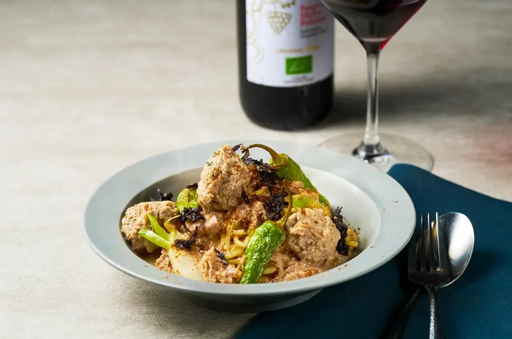 このつくねは一皿の中で食感と旨みのアクセントとして機能し、パスタ全体の完成度を高めます。
