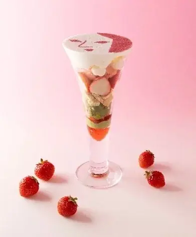 | 主な構成 | 旬のいちご、抹茶カスタード(パティシエ手作り)、宇治抹茶アイス、白玉、香ばしいビスケット、いちごゼリー(パティシエ手作り) |