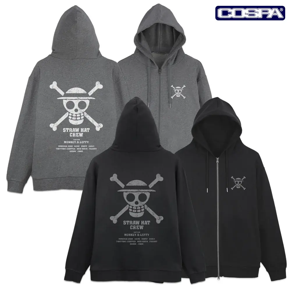 | 麦わらの一味 ジップパーカー | 2026年5月下旬 | M / L / XL / XXL | BLACK / MIX GRAY | 8,800円 | 耐久性が高く柔らかな肌触り。ダブルジップ。デザインにかすれ処理。 |