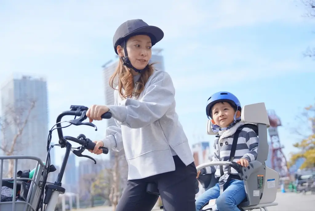 主な対象は0〜2歳児の保護者(育休中の方を想定)だがどなたでも参加可。ヘルメット試着・頭囲計測、チャイルドシートやレインカバーの装着体験、電動アシスト自転車での乗せ降ろし体験などができる。