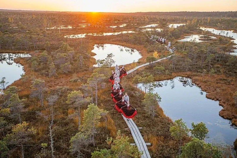 キェメリ国立公園はユールマラ近郊の海沿いに位置し、湿原や森、湖が広がる生物多様性の豊かなエリアです。公園中央にある「グレート・キェメリ湿原ボードウォーク」は、ラトビアでも最大級の湿原を間近に観察できる木道で、季節ごとの景観変化が魅力です。