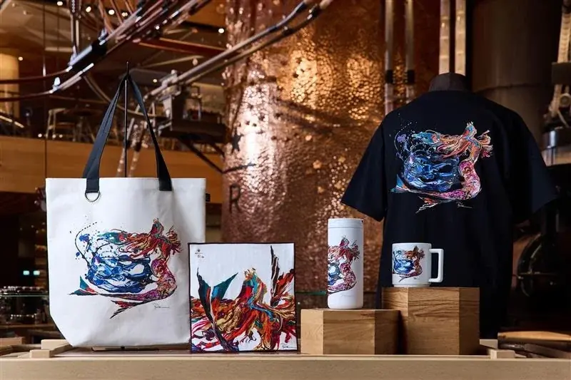 全商品に共通するデザイン要素として、山下氏の描き下ろしアートが用いられ、サイレンのエンブレムと7周年アイコン(クラウンを想起させる意匠、7色で要素を表現)が配されています。これによりロースタリー 東京の世界観が統一的に表現されています。