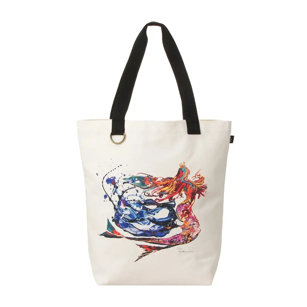 説明:白いキャンバス生地に躍動感あふれるサイレンのアートを大胆に配したトートバッグ。余白を活かしたシンプルな佇まいの中に、カラフルで力強い筆致が映える仕様です。サイレンの頭に重なるクラウンモチーフの7周年アイコンがアクセントになっています。