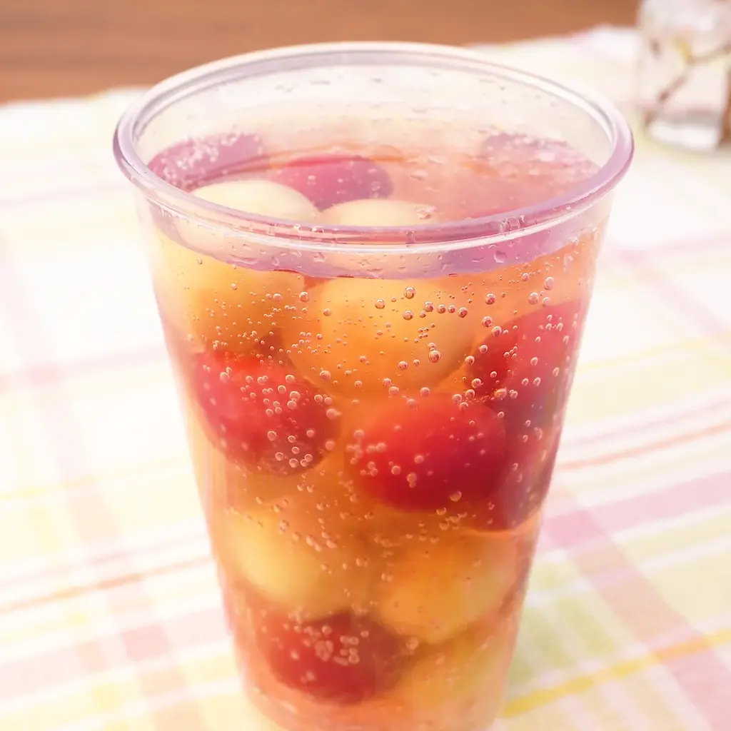 既製品を組み合わせることで手早くかわいいドリンクを作れるメニューです。まんまるのアイスをサイダーなどの炭酸に入れると、時間とともにアイスの味が溶け出して味の変化が楽しめます。