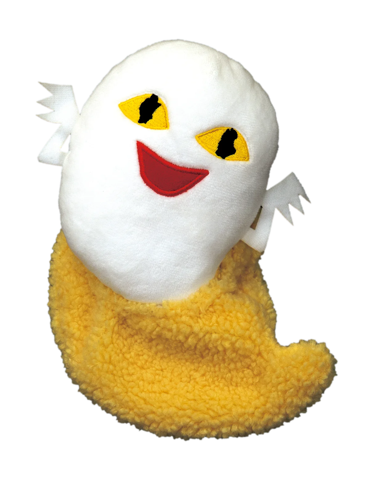 ぬいぐるみは、絵本のあるシーンを再現できる仕様で、天ぷらに揚げられそうになってしまうおばけの場面を手で再現して遊ぶことができるようになっています。造形や付属のころもは取り外し可能で、絵本の物語と連動した遊び方が提案されています。