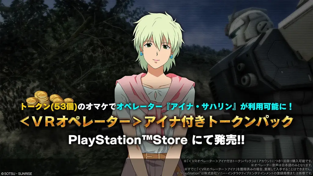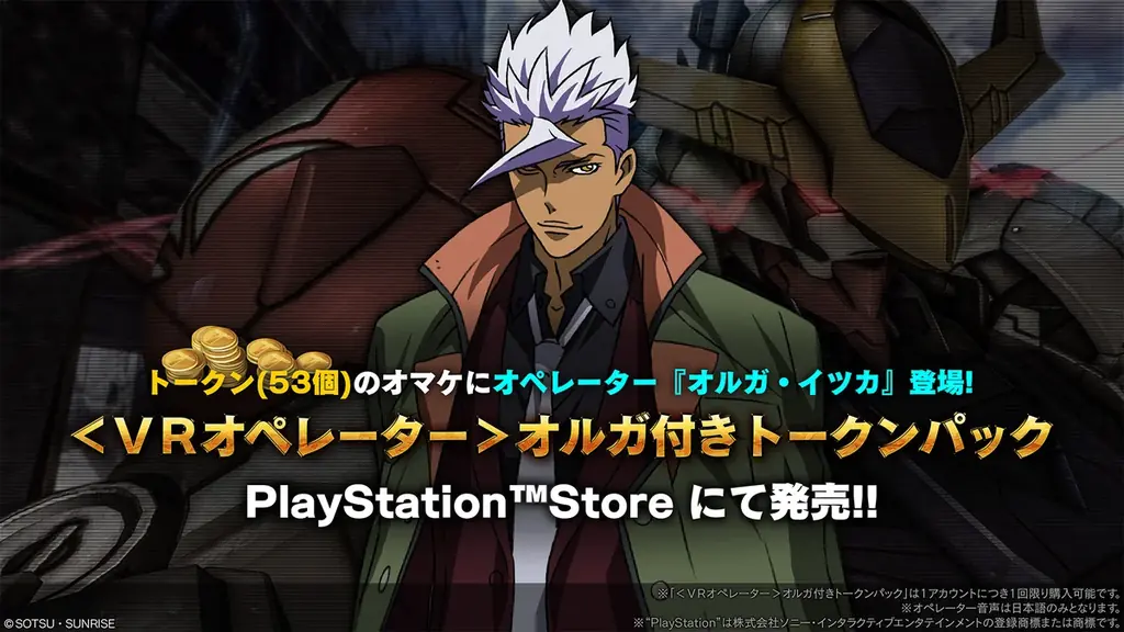 オルガ付きトークンパック 販売期間:2026/3/5(アップデート後)~2026/3/26(木)13:59予定。トークン53個+オペレーター(細谷佳正)。PSストア購入ページあり。
