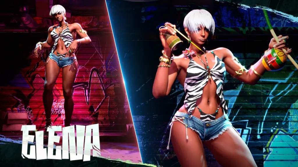 今回のOutfit 4は好評の水着シリーズの一環として追加されるもので、対象キャラクターはディージェイ(Dee Jay)とエレナ(Elena)です。ディージェイは“夏をテーマにしたミュージックビデオに出演する際の衣装”、エレナは“港町でのひと時を楽しむ水着”というコンセプトがそれぞれ与えられています。新水着コスチュームを着用することで対戦時のビジュアルに変化が生じます。