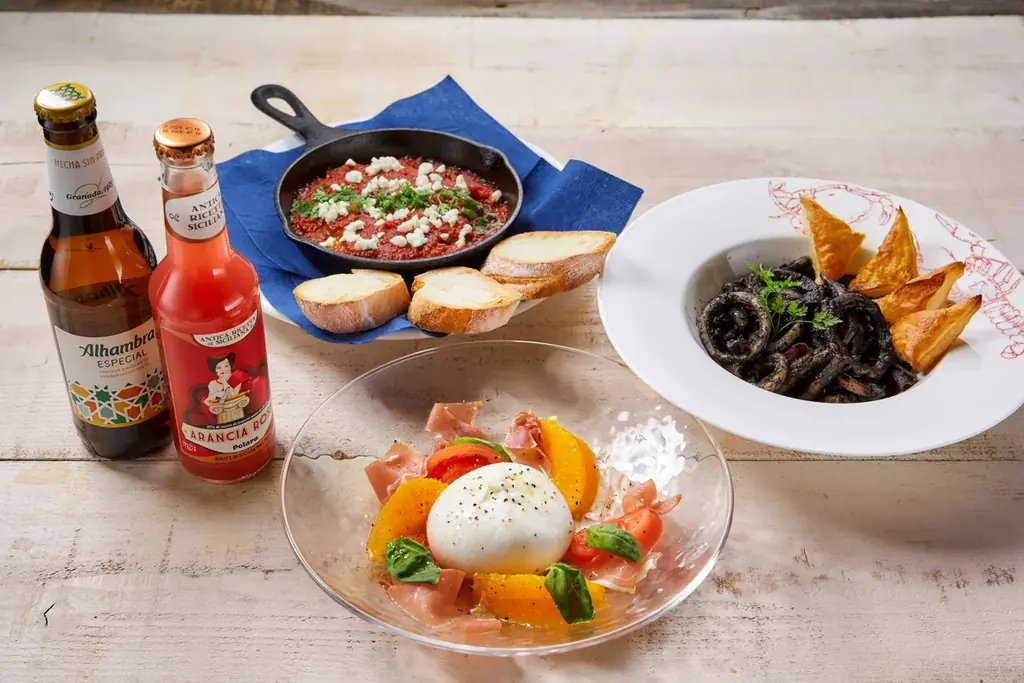 | 提供メニュー(新作) | イタリア産ブッラータのサラダ、ギリシャ産フェタチーズ 海老とトマトのグリル、スペイン産イカスミの墨煮ショートパスタ、ノンアルコール飲料「アランチャロッサ」、ビール「アルハンブラ エスペシャル」 |