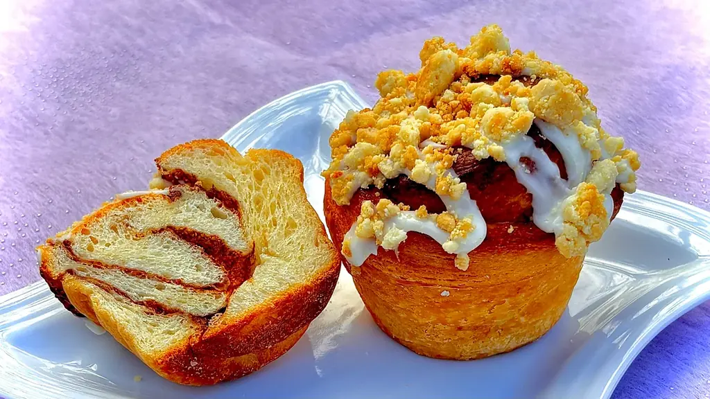 | グランプリ | ベーカリー ペニーレイン「ロックンロール」(栃木・那須) — 那須高原産の卵を使用したしっとり生地、自家製シナモンペースト、チーズを忍ばせたフォンダンソース、クランブルをトッピング |
