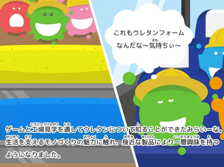 今回の共同開発に関して、miraiiのゲーム開発担当者は、ウレタンの配合技術や一貫生産体制といった“目に見えにくい技術”を子どもたちに届ける価値を強調し、製造業の現場をそのまま公開できない制約があるため、ゲームを通じて体験を可能にしたことを説明しています。ゲームを通じて子どもたちが将来の選択肢を広げるきっかけになることを期待していると述べています。