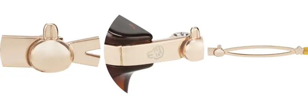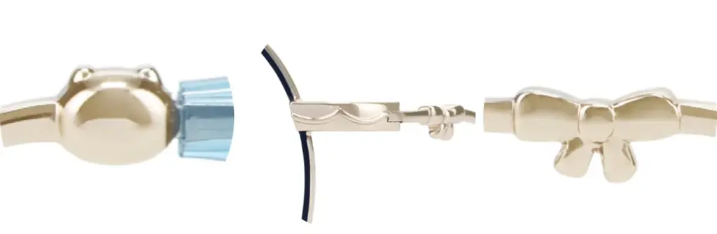 ハチワレの特徴的な模様“ワレ”を生かした意匠や、リボンをメタルの曲線で表現した点が本モデルの特徴です。アクセントとなるシルエットパーツが装着感を引き締めています。