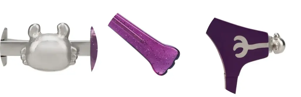 デザインポイントとしては、ちいかわのシルエットパーツがさりげないアクセントとなり、さすまたの表現をメタルで再現した点、レーザー彫りによる繊細なモチーフ表現が挙げられます。小ぶりなサイズ設計により、顔馴染みの良さも意図されています。